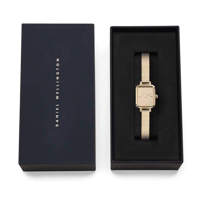 CAJA: Acero 316L pulido chapado en oro amarillo. Forma rectangular.