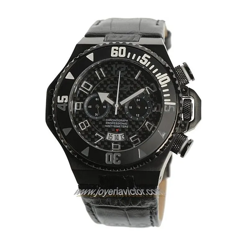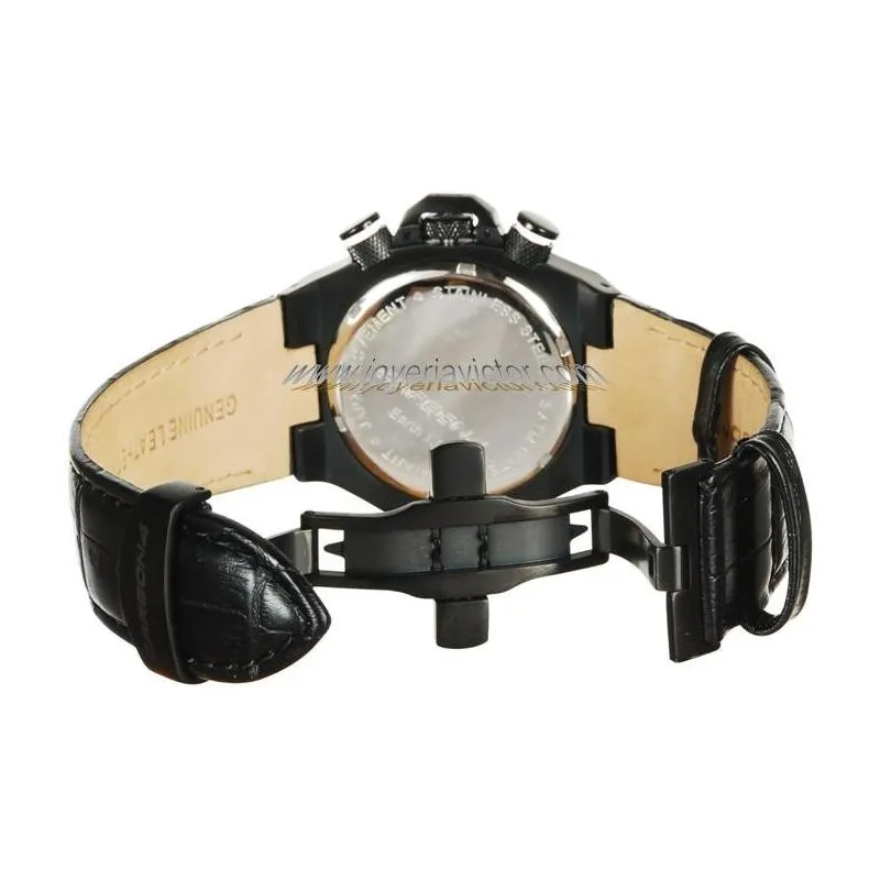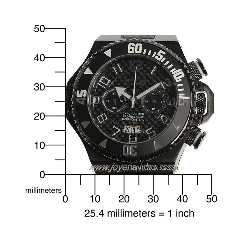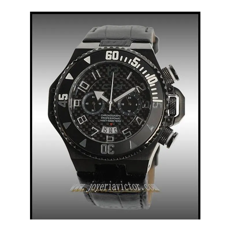 FUNCIONES: Movimiento al cuarzo con cronómetro CALENDARIO: Si SUMERGIBLE : 5At. DIMENSIONES: Diámetro maximo de la caja excluyendo corona y botones de 45mm