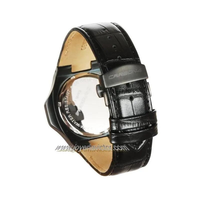 CORREA: Correa de piel de color negro. 26mm de ancho con cierre de seguridad abrefacil mediante 2 pulsadores