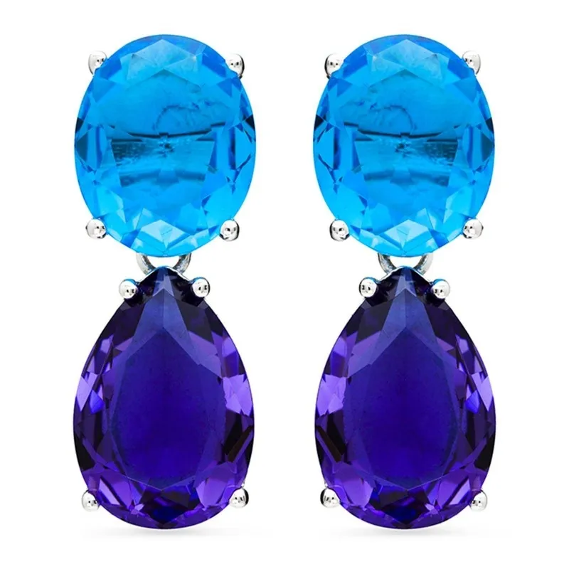 Pendientes de plata de ley chapados en oro rosa con movimiento y piedras azules y amatistas.