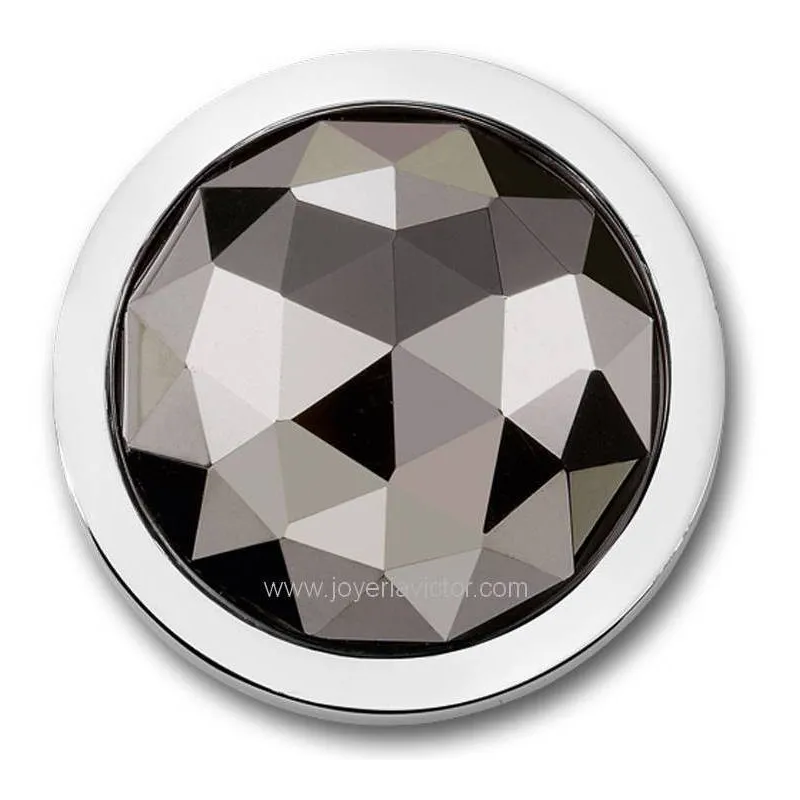 Moneda de acero con piedra tallada de color gris metalizado
