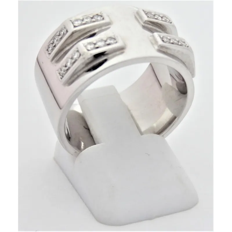 Anillo macizo de oro blanco de primera ley de 18 quilates con 24 diamantes talla brillante.