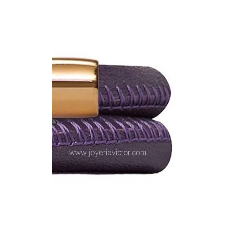 Pulsera de cuero de 0.7cm de grosor. Cierre de acero chapado en oro de 3 micras, embutido con imán.