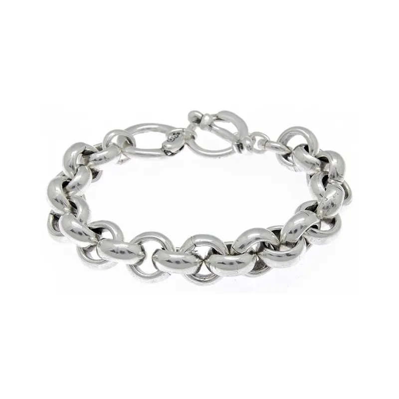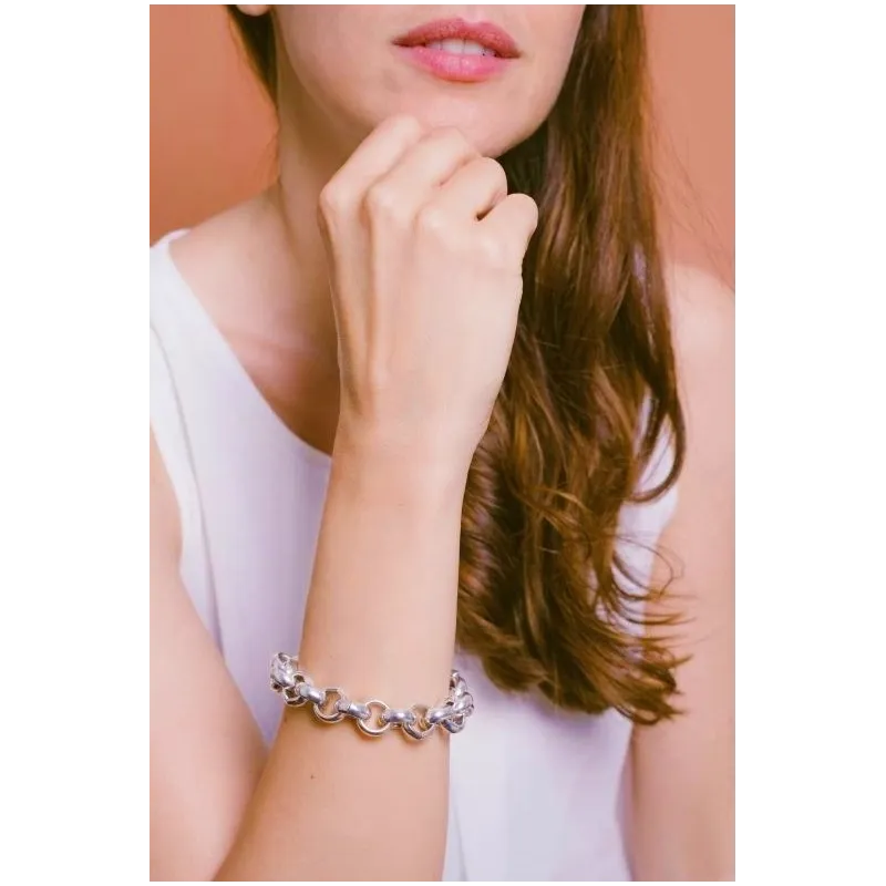 Pulsera fabricada en Zamak inalterable bañado en plata con piezas circulares.