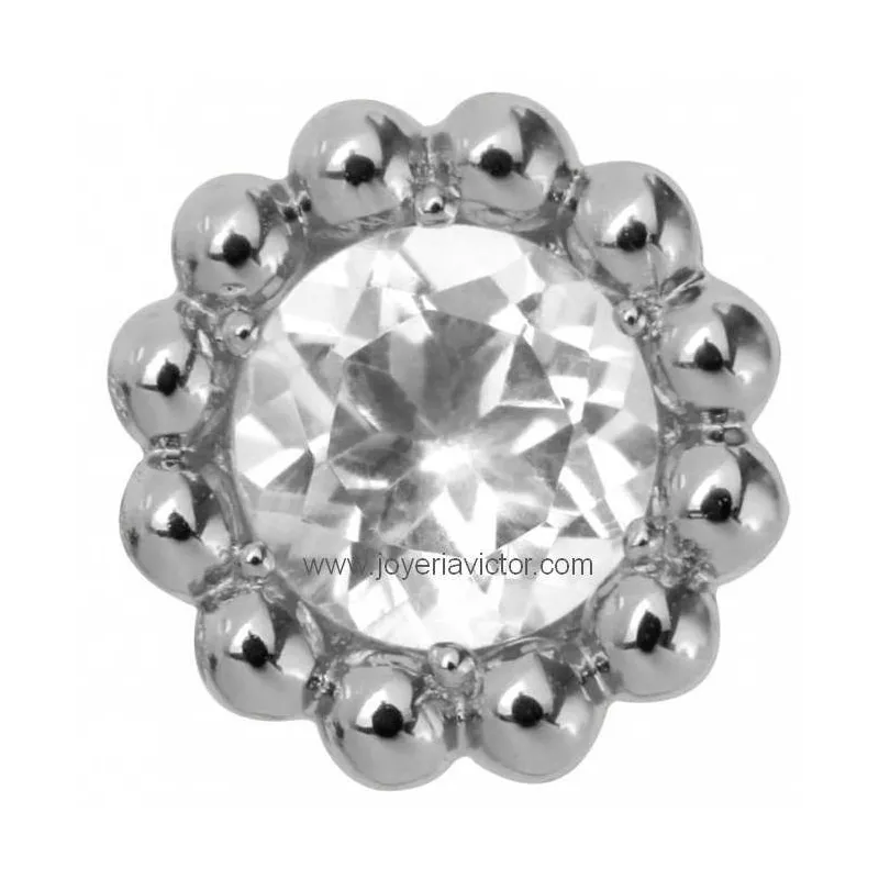 El charm de plata de ley Flor de Cristal, es un charm con una piedra de cuarzo blanco tallada con dibujo de flor.