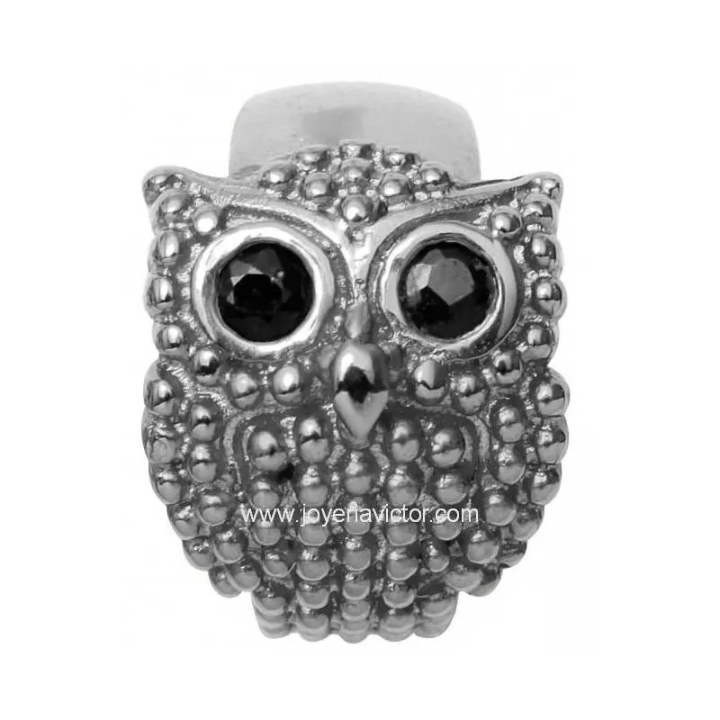 El charm de plata de ley Buho, es un charm con forma de buhito con dos Zafiros Negros auténticos en los ojitos.
