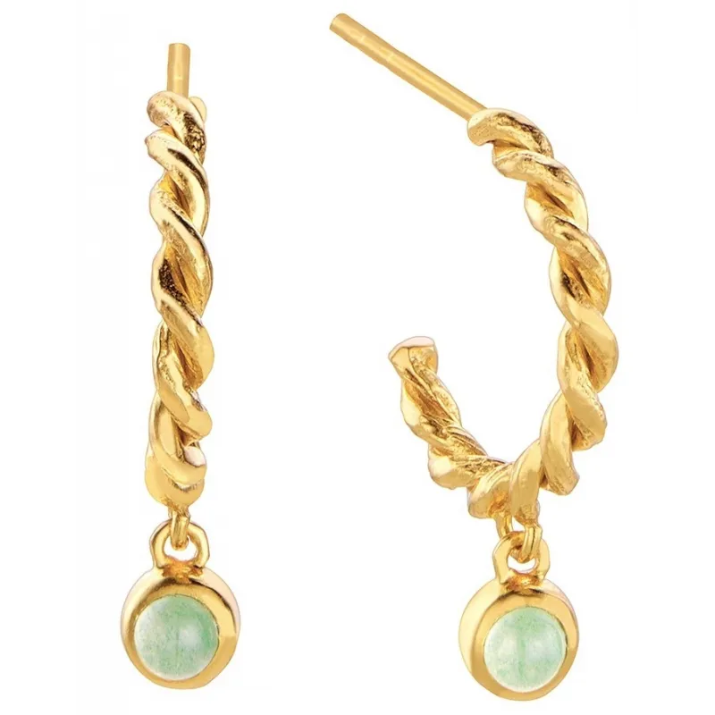 Pendiente de aro entorchado con colgante esférico con piedra aventurina