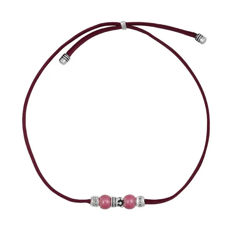 El collar Best Friend de Ciclón simboliza una amistad eterna. Con goma elástica burdeos, fusiona estilo y comodidad. Pasador de corona y esferas "Best Friends" plateados añaden encanto. Detalles capturan la esencia de la amistad duradera. Esferas de cristal murano en tonos vibrantes añaden belleza. Ajustable a 48 cm, se ajusta cómodamente. Regalo ideal para celebrar amistades especiales. Luce con orgullo el collar Best Friend y celebra la amistad inquebrantable. Demuestra amor y aprecio con estilo. Elegante y lleno de significado, será un tesoro.