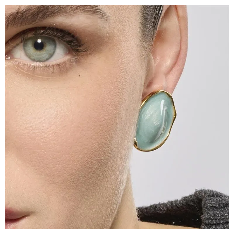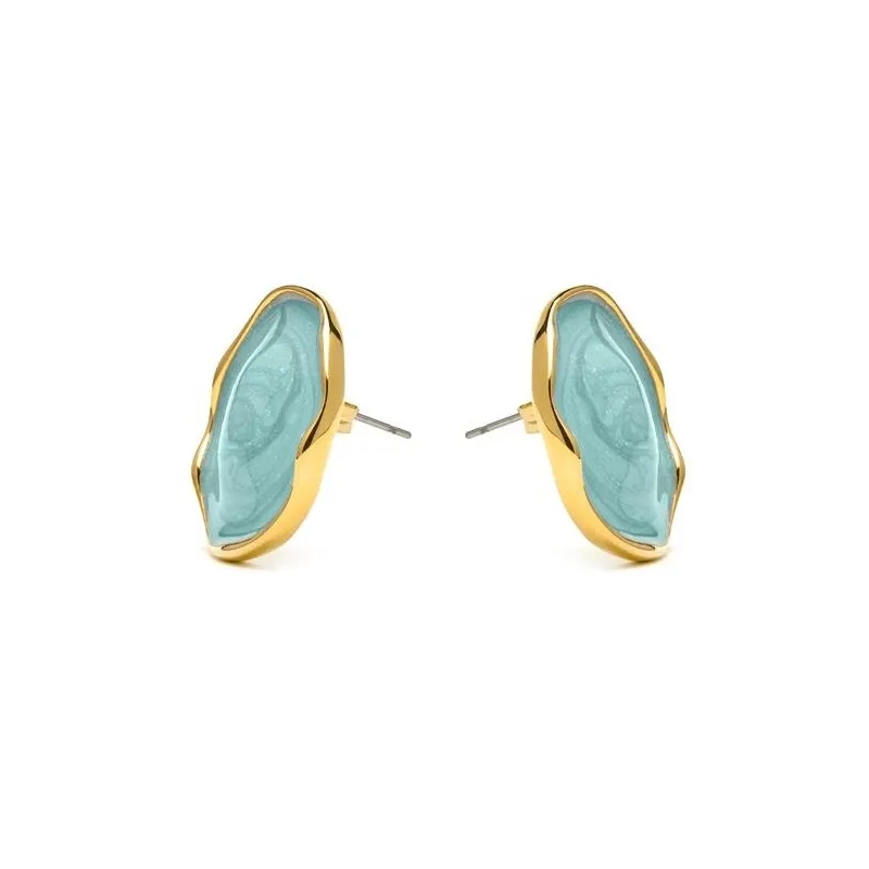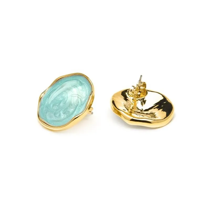 Pendientes Huldio de Lacado Azul acabado oro amarillo de 18k.