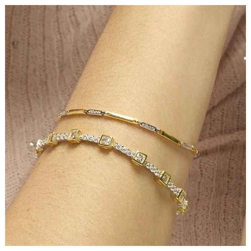 Pulsera Welco de Plata de Ley 925 y Circonita Brillante acabado oro amarillo de 18k.