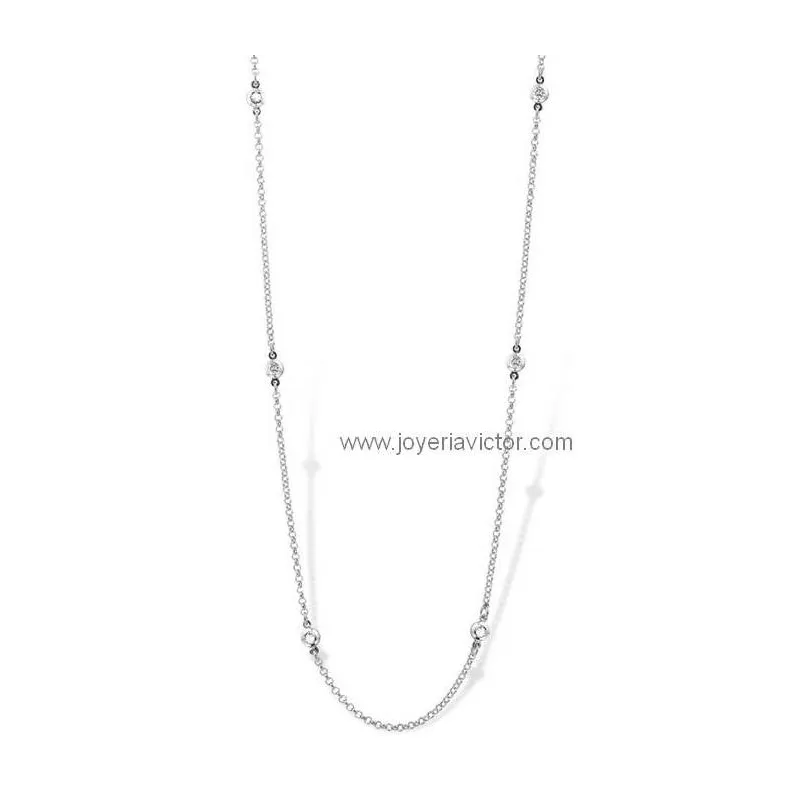 Cadena de Plata de Ley 925 rodinada tipo rolo con 6 cristales de Swarovsky integrados cada 8cm.