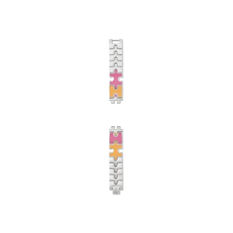 Pulsera de acero con forma de piezas de puzzle con esmalte. 12mm.