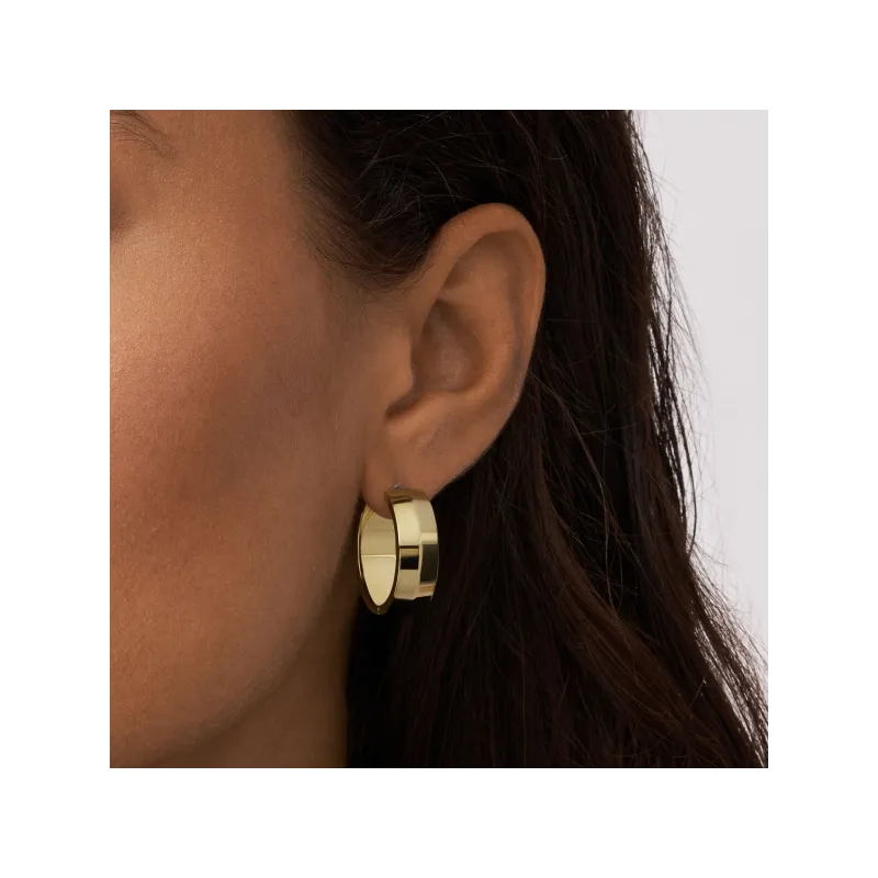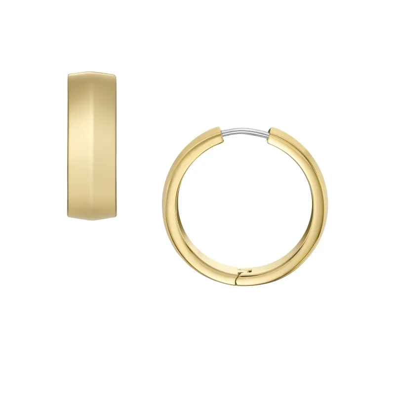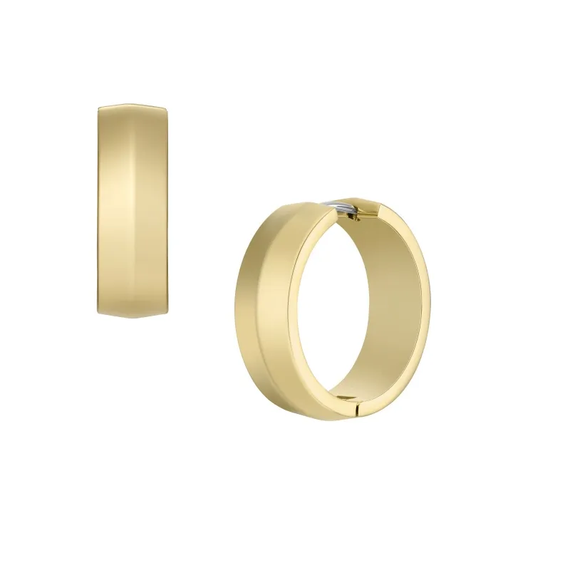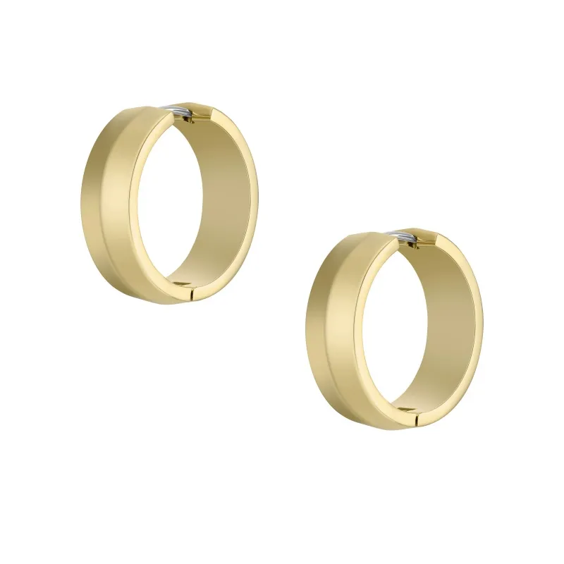 Pendientes de aro de acero chapado en oro amarillo con dibujo lineal liso central.