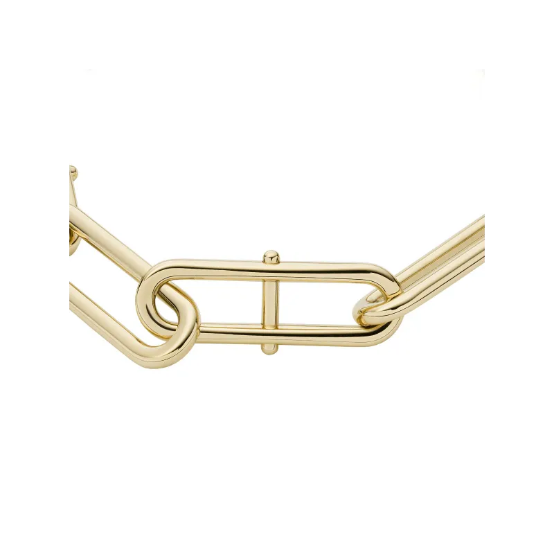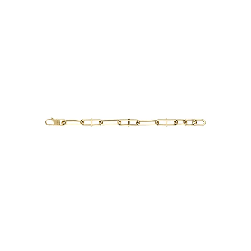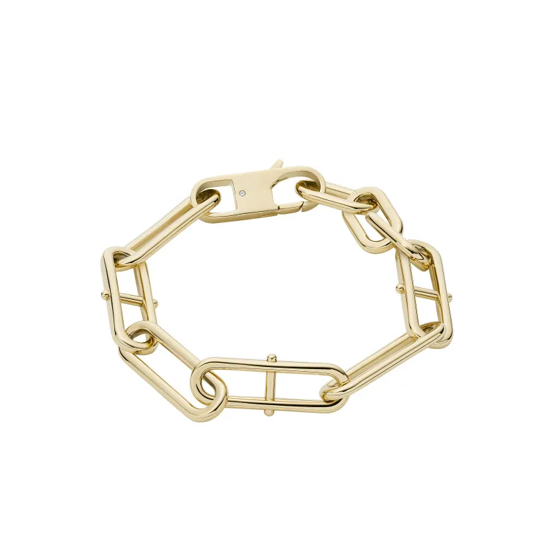 Pulsera de acero chapada en oro amarillo con mallas ovaladas reforzadas.
