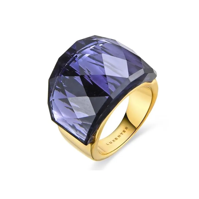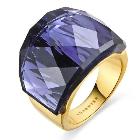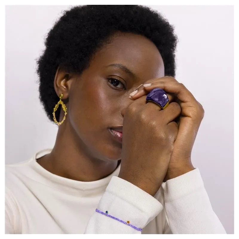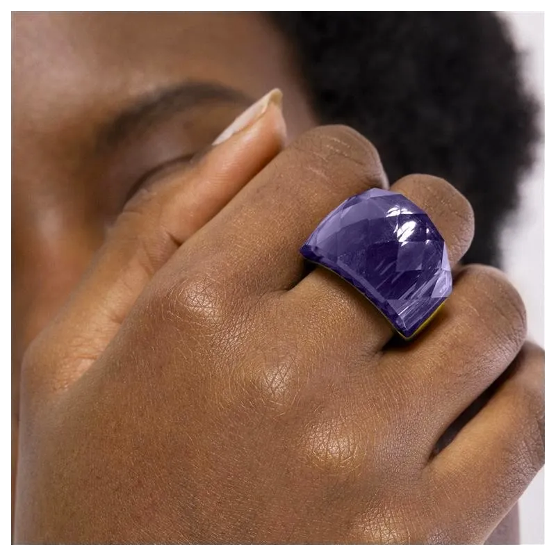 Anillo de metal Fadino con Cuarzo Hidrotermal Amatista acabado en oro amarillo de 18K. África se convierte en la línea perfecta para mujeres con personalidad, que no temen arriesgar y lucir piezas con carácter propio. Ancho: 18mm
