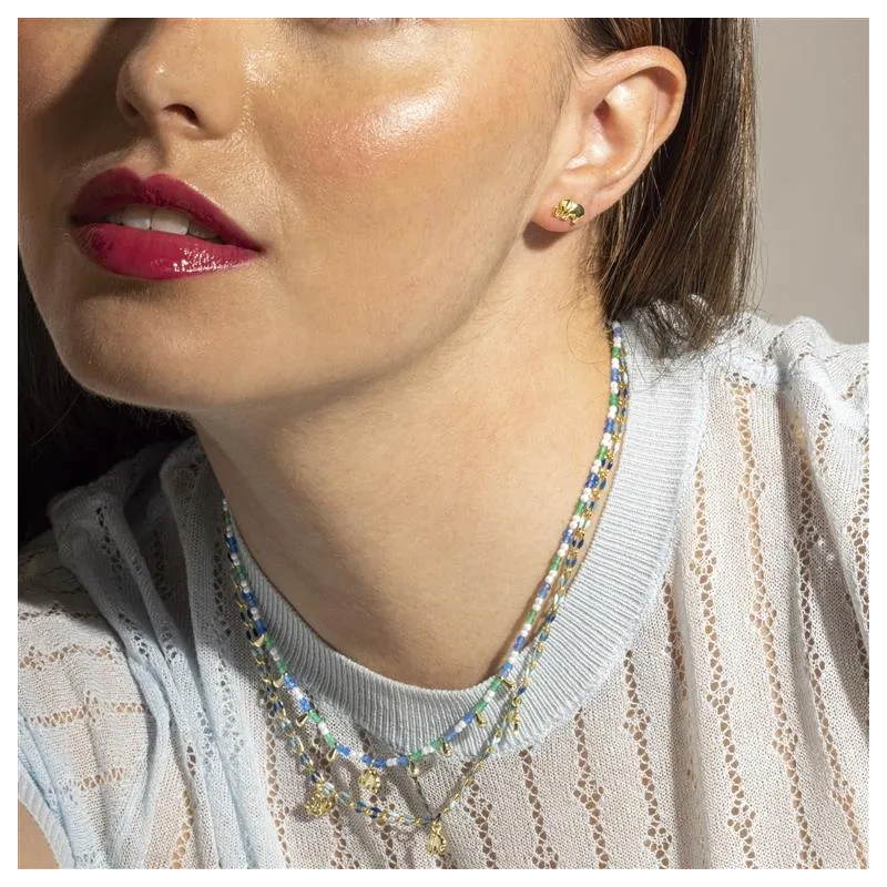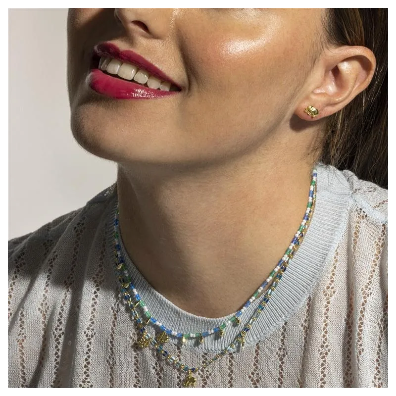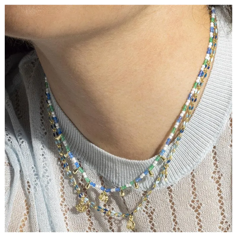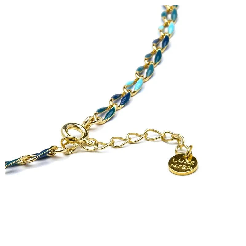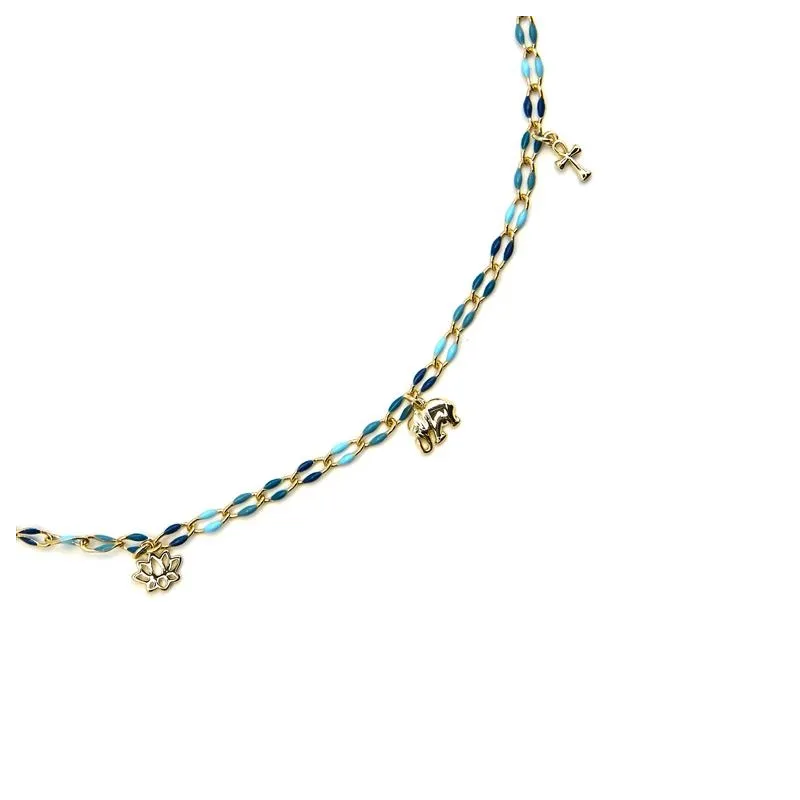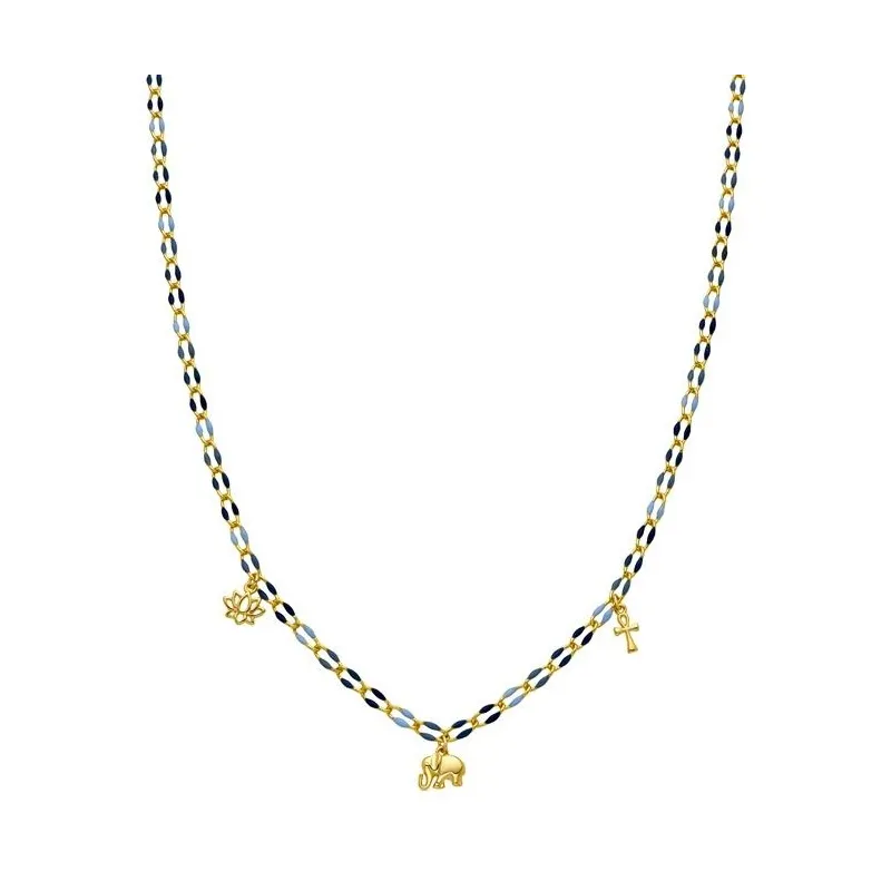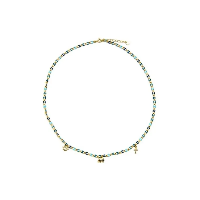 Collar Shione cierre de Plata de Ley 925, abalorios y colgantes de metal y Lacado Azul acabado oro 18k. Pide un deseo se caracteriza por diseños de carácter joven, repletos de significado y color, originales a la vez que discretos, que pretenden convertirse en pequeños amuletos.