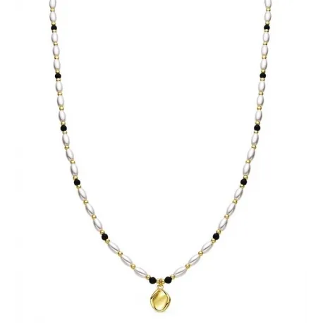 Collar de metal Zizi con Perla Blanca acabado oro 18k. El estilo Boho es una estética de espíritu libre que mezcla diferentes culturas y expresiones artísticas en un estilo ecléctico con énfasis en los elementos orgánicos y la naturaleza.
