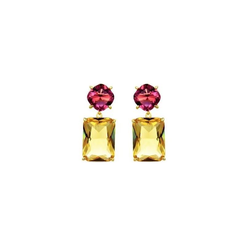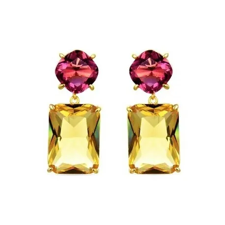 Pendientes de plata de ley 925 chapada en oro amarillo de 18 quilates con 2 piezas independientes de cuarzo hidrotermal brandy y fucsia.