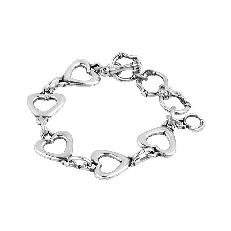 Pulsera Corazón de eslabones bañada en plata de la colección Essentials. Diseño de con motivo de corazones encadenados.