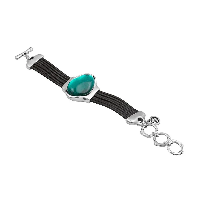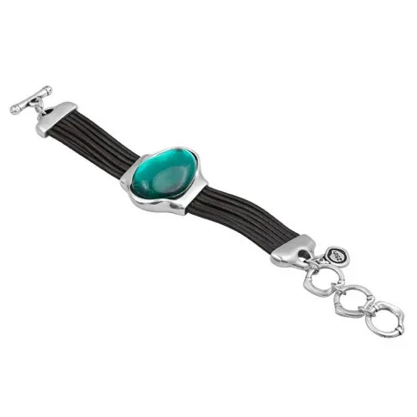 La pulsera Vega bañada en plata, de la Colección 25th Colors, es una joya impresionante que cautiva con su estilo único. Esta pulsera de estilo brazalete presenta ocho hilos de cuero, creando un diseño llamativo y moderno. Está delicadamente decorada con un cristal de murano disponible en dos colores diferentes, añadiendo un toque de elegancia y sofisticación. Con una talla única regulable de 17 a 21 cm, se adapta perfectamente a tu muñeca. Además, cuenta con un cierre T de tres aros que garantiza un ajuste seguro y cómodo. Descubre la belleza y la distinción que ofrece la pulsera Vega bañada en plata de la Colección 25th Colors, una joya que resalta tu estilo con elegancia.