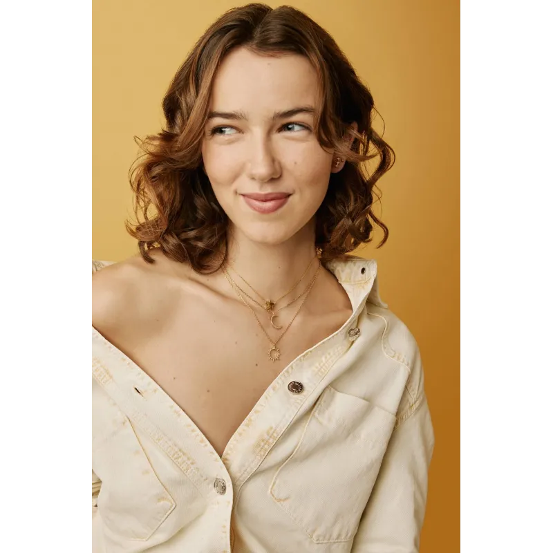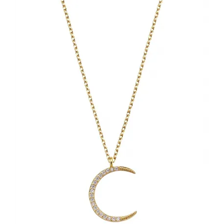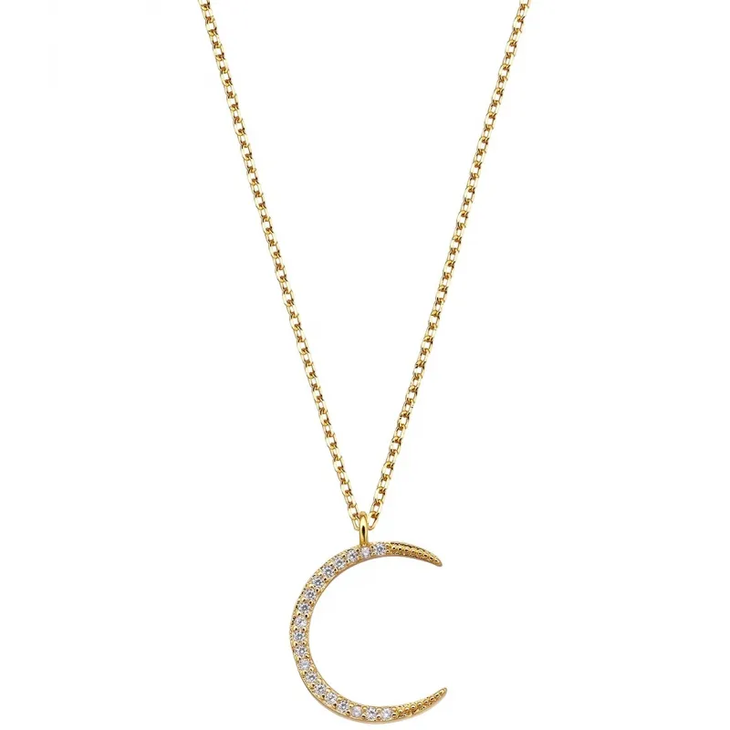 Collar con cadena sencilla y colgante con forma de luna con circonitas blancas. Diámetro del colgante 20mm.